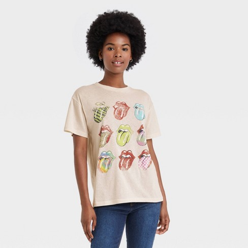 Women S The Rolling Stones Logo Short Sleeve Graphic T Shirt Beige Xs Target
